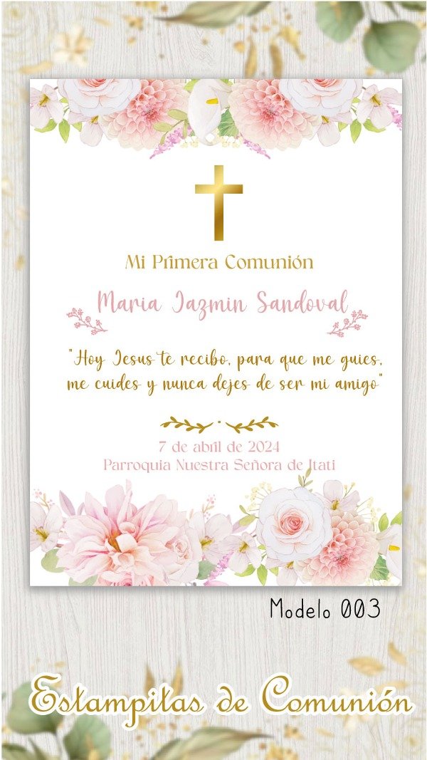Estampitas ideales para Comunión, Confirmación o Bautismo.